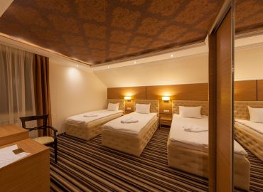 Camera triplă se identifică soților care călătoresc împreună cu un copil. Spațioasă și luminoasă acest tip de cameră oferă o atmosfera ideală pentru familie.